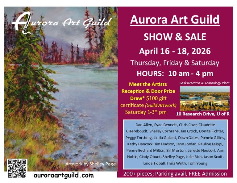 DOOR PRIZE: $100 gift certificate toward the purchase of Guild artwork (min. value of $100) available at the final hour of this event OR at any upcoming Aurora Art Guild Show (no cash value; cannot be applied to an earlier purchase; non-transferable; cannot be combined with any other gift certificates/promo). Winner will be announced at 3 pm on Saturday (door prize entrants do not need to be present to win the prize),